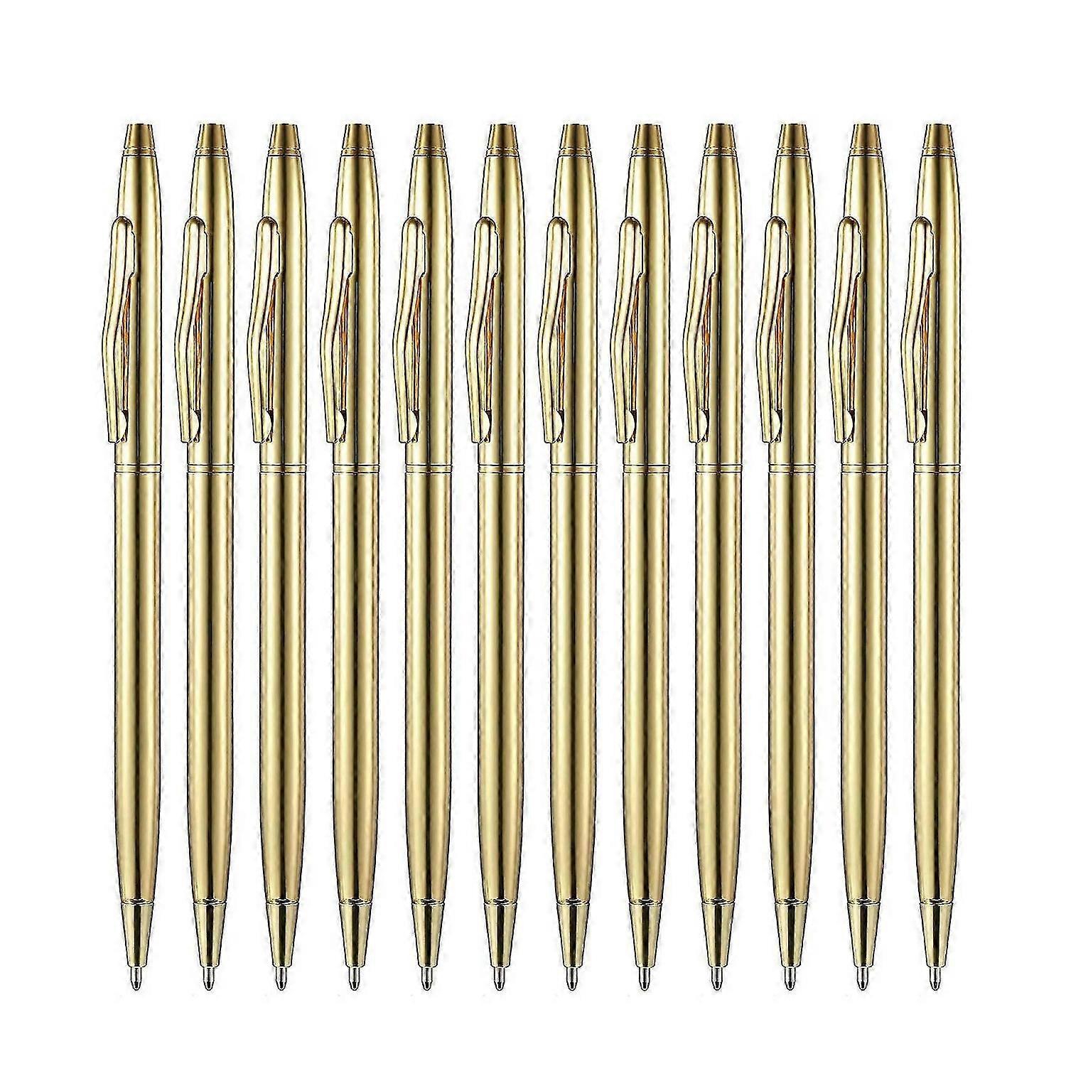 12 PCS Gold Slim Ballpoint Pens Black Ink 1 mm Medium Point Pens
