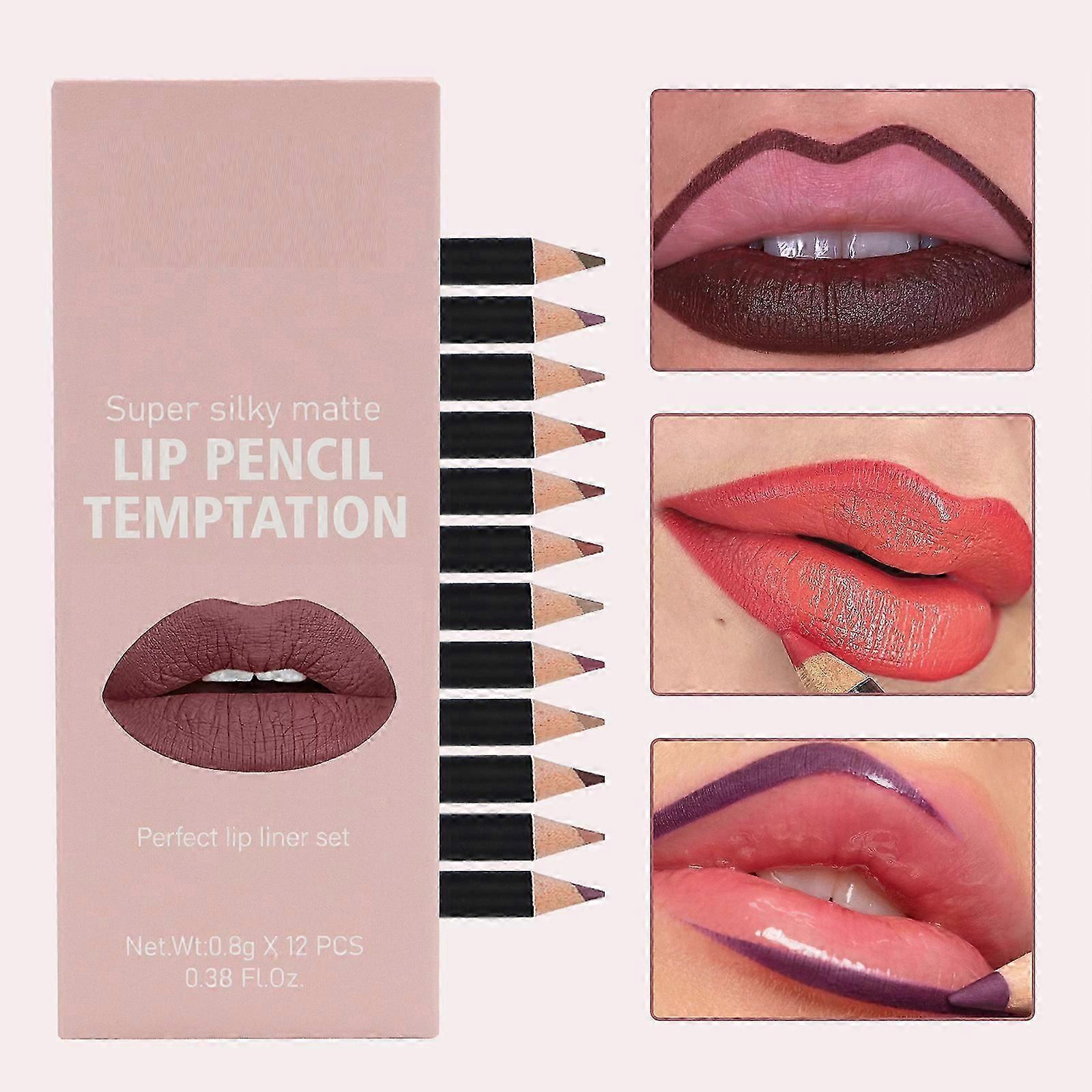 12 Colors Crayon Matte Longwear Lip Pencil, Lip Contouring Pencil, Waterproof Long Lasting Nude Lipgloss Lip Stain Kit