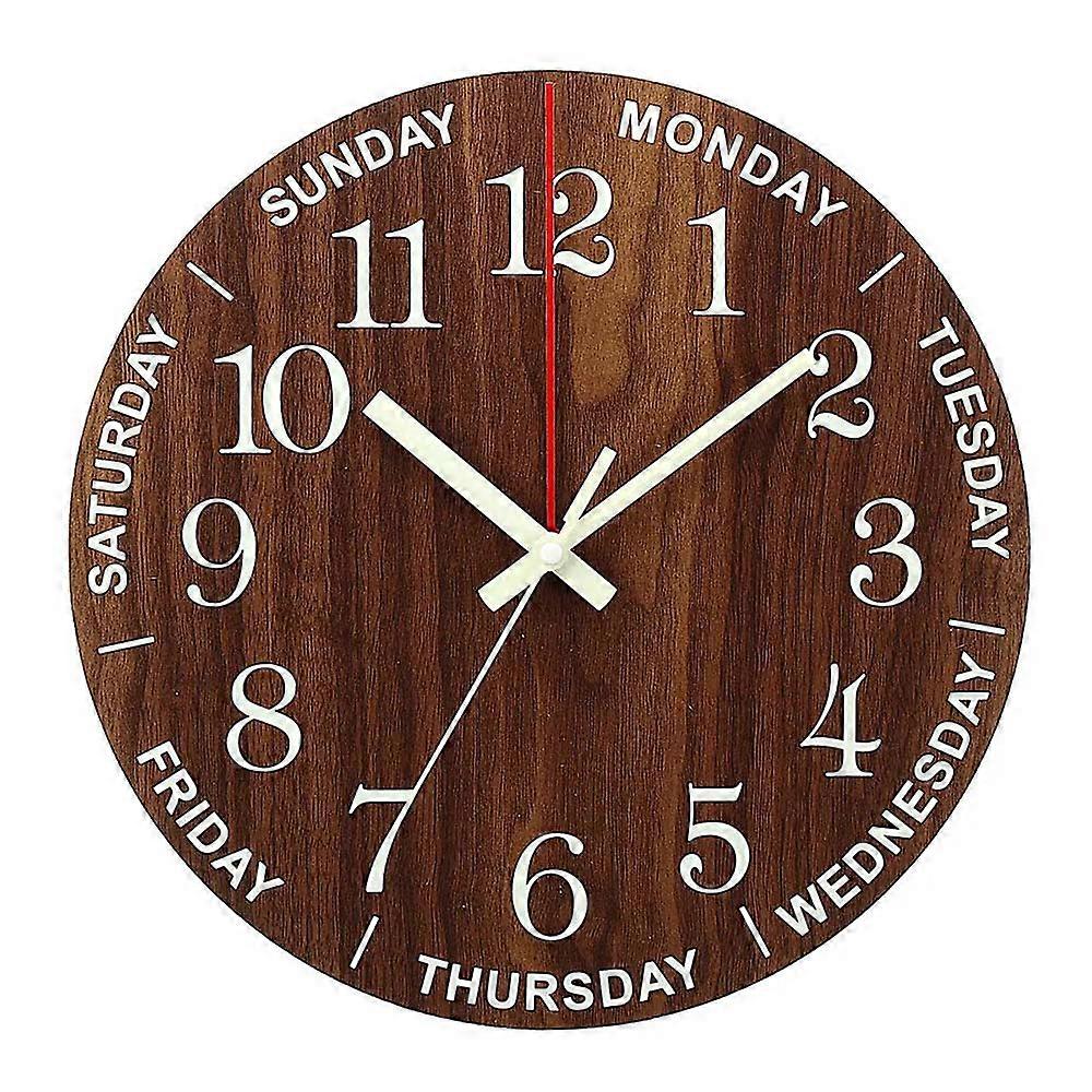 12" Luminous Wall Clock Wooden Silent Tickless Clock with Night Light