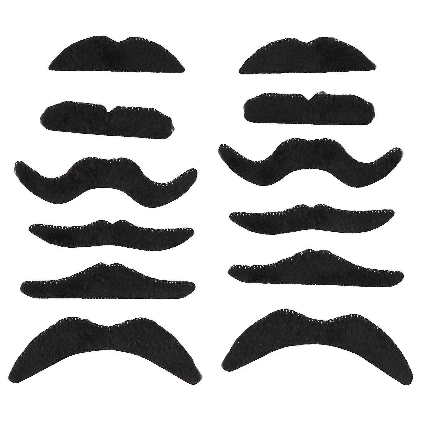 12 Pack Self Adhesive Assorted Moustache / Mustache Set Fancy Dress Party Birthday Stylish