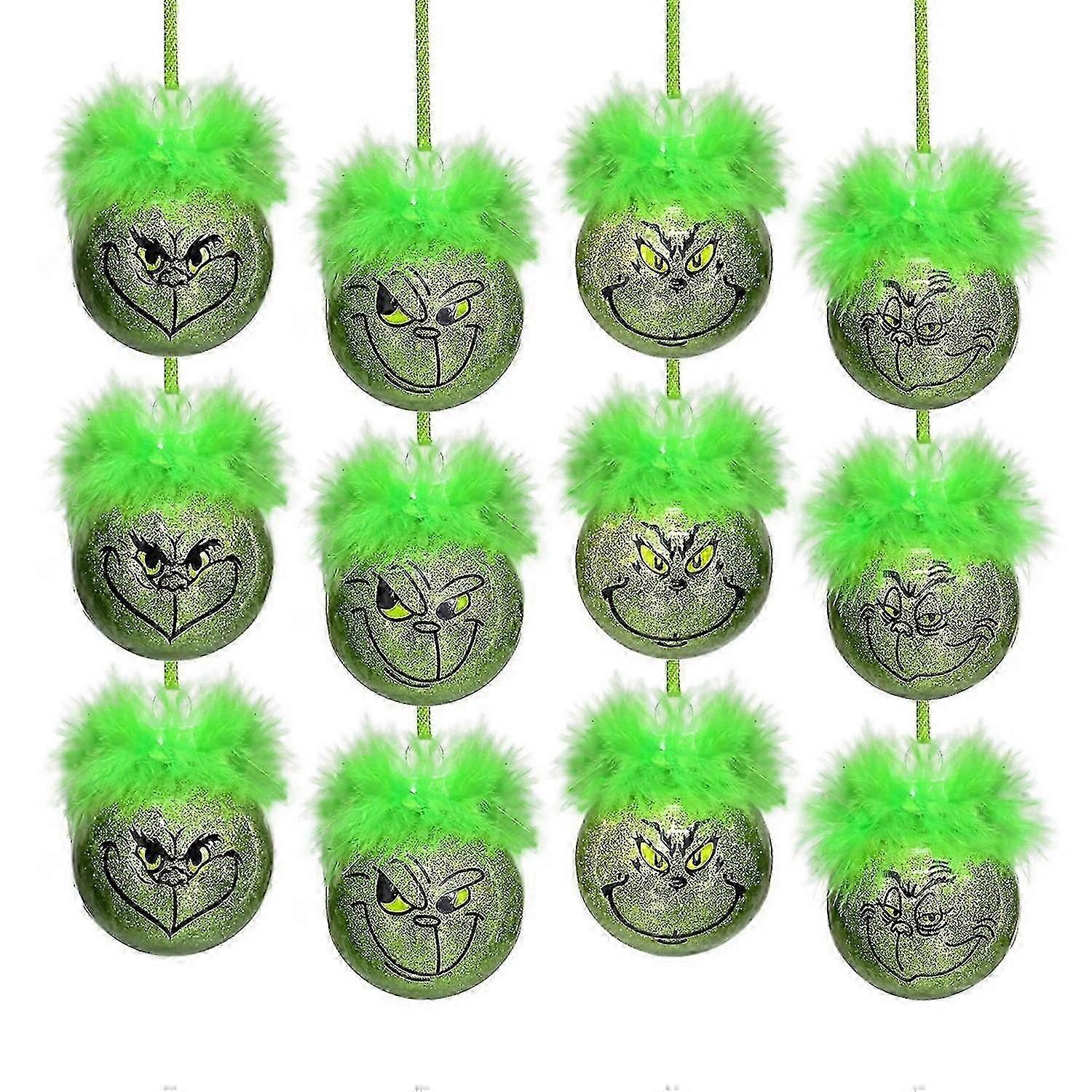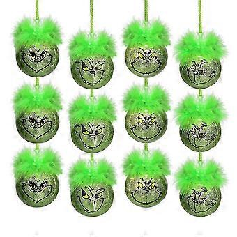 12-Pack Grinch Baubles Christmas Tree Hanging Baubles Balls Ornaments - Green Elf with Fuzzy Hair De