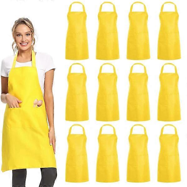 12-pack Solid Color Bibs with 2 Pockets - Unisex Aprons in Bulk [DB] yc