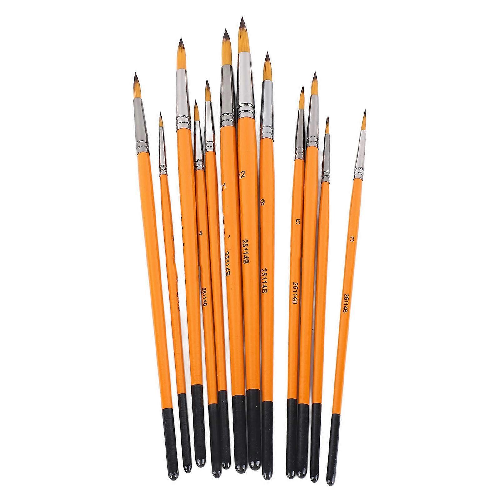 12Pcs Acrylic Paint Brushes Smoothing Nylon Wooden Handle Metal Ferrule Widely Used Artist Paint Brushes for Craft Art Orange Handle Round Tip