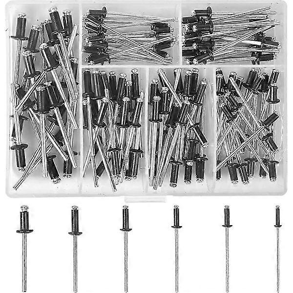 High Quality - Aluminum blind rivets are made of high-quality aluminum, one of the highest forms of corrosion resistance, making them more durable than other hardware on the market today. Applications - This type of rivet is especially suitable for situations where regular rivets need to be riveted on both sides when you don't have access from both sides. Black blind rivets are used to join parts; the riveted joints are strong, tight, lightweight, and extremely reliable. 120 Pcs Black Rivets - Pop rivet assortment black kit with storage box, aluminum pop rivets for furniture assortment kit, often used in pneumatic rivet tools, electric rivet tools, and manual rivet tools. (M2.4 M3.0 M3.2). Anti-Corrosion - Aluminum rivets are superior to ordinary steel and offer excellent rust resistance in saltwater applications. Standard head, smooth surface, easy to install, and simple riveting. Wide Application - The rivet mandrel is smooth, burr-free, and works well. It is widely used in construction, automobiles, ships, aircraft, machinery, electrical appliances, furniture, and other products.