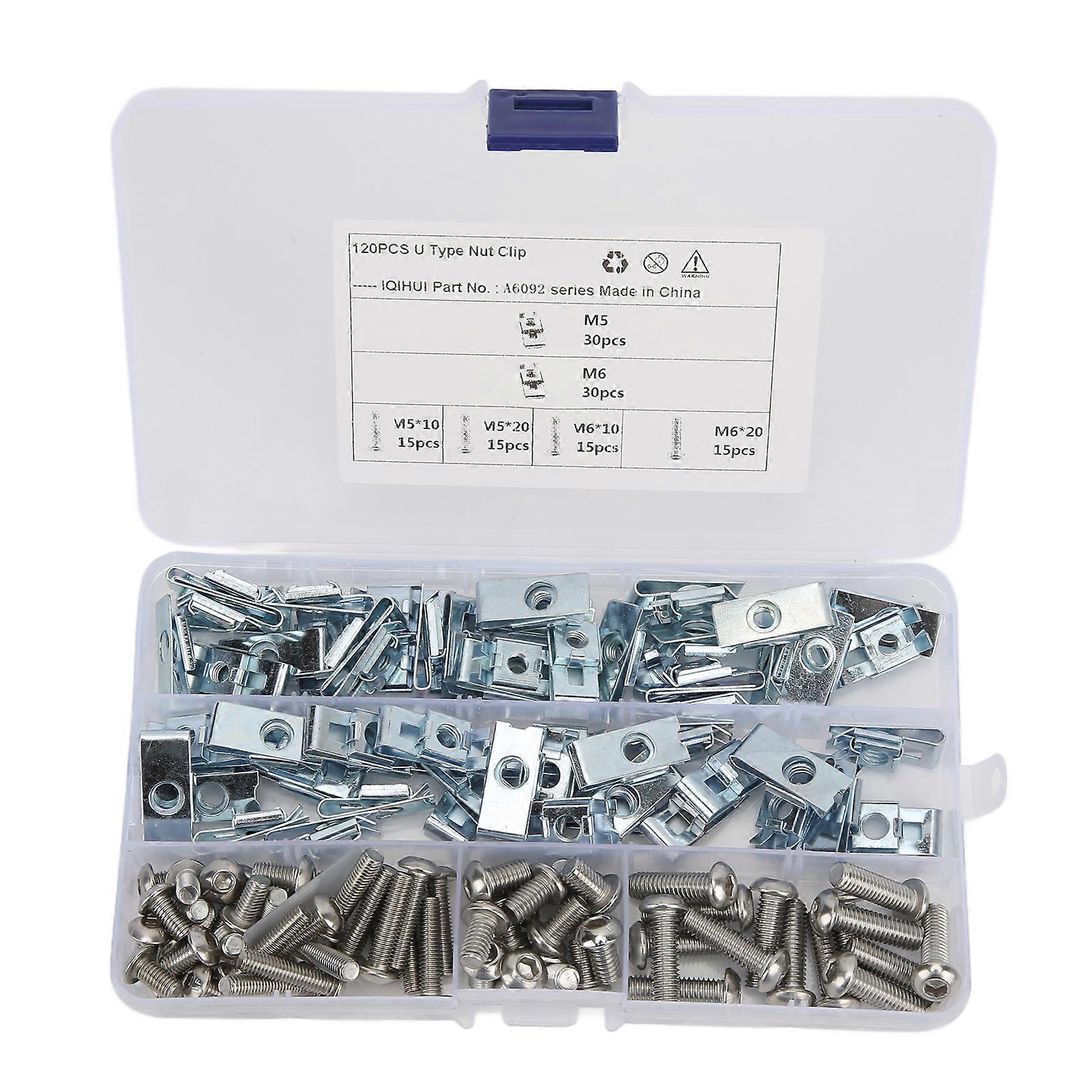 120pcs U Type Nut Clip Carbon Steel U Shape Clip Nut Part Fixed Interior for Motorcycle Car Tractor