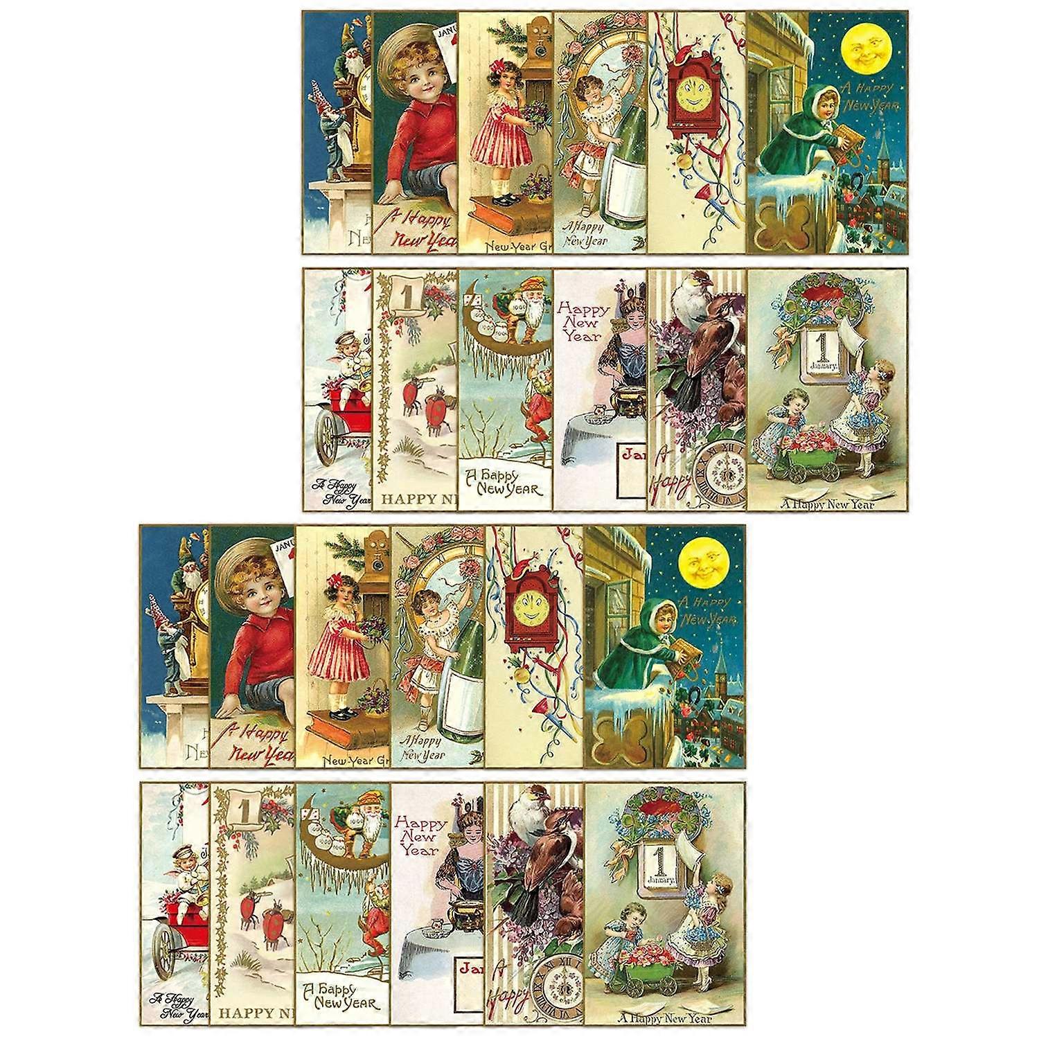 12/24 Pcs Happy New Year Greeting Cards Retro Illustrations Holiday Cards with Gold Foil Accents for