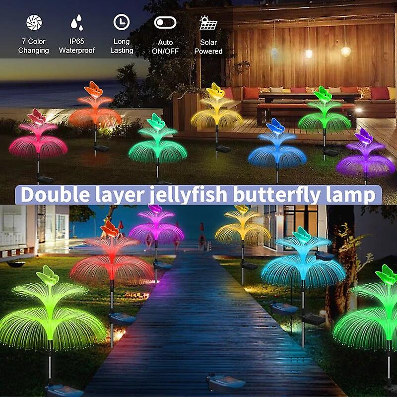 1/2/4/6pcs Solar Garden Lights Waterproof Solar Outdoor Decor Lamp 7 Color Changing Double Layer Jellyfish And Butterfly Lights