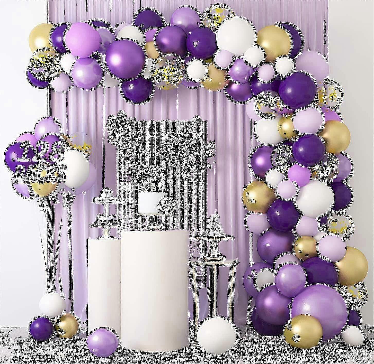 128 Pcs Purple Balloon Arch Kit, Purple And Gold Balloon Garland Kit, Metallic Purple White Balloons-sy