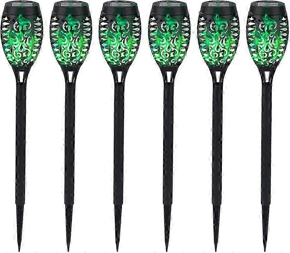 12LED Outdoor Solar Flame Light StakesGreen Flickering Light IP65 Waterproof Solar Torches6pcs