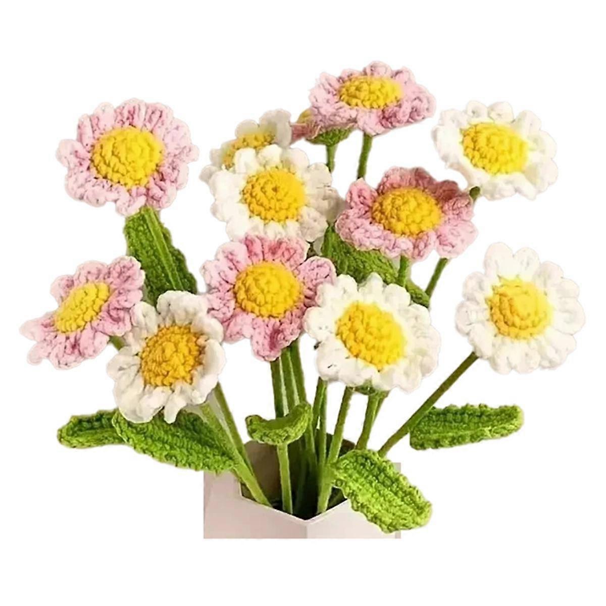 12PCS Handmade Daisy Crochet Yarn Hook Flower Knitted Bouquet Birthday Gift Home Party Wedding Deco