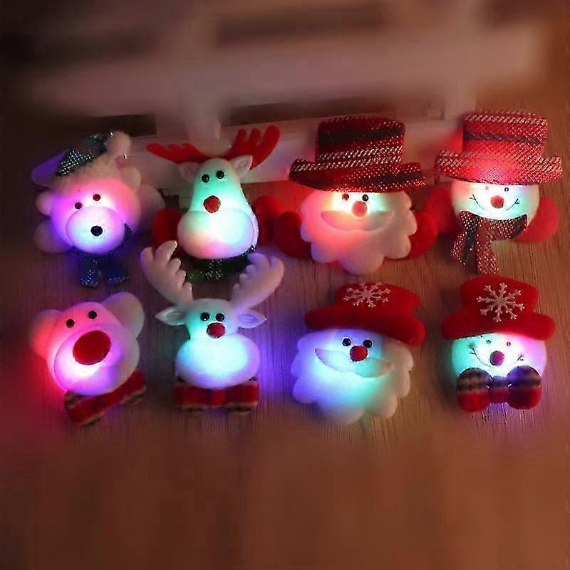 12pcs Led Brooch Pins Nice-looking Decorative Lightweight Lighting Christmas Colorful Glitter Brooch Santa Pins For Party
