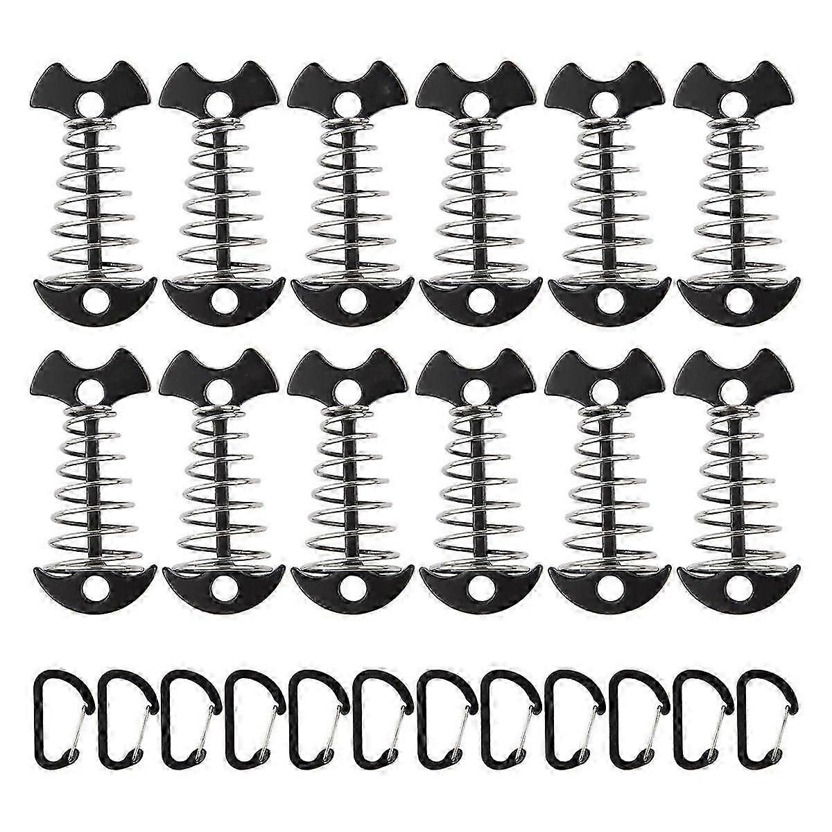 12PCS Tent Stakes Aluminum Deck Tie Down, Deck Anchor Pegs, Tent Rope Tighteners with Spring Buckle