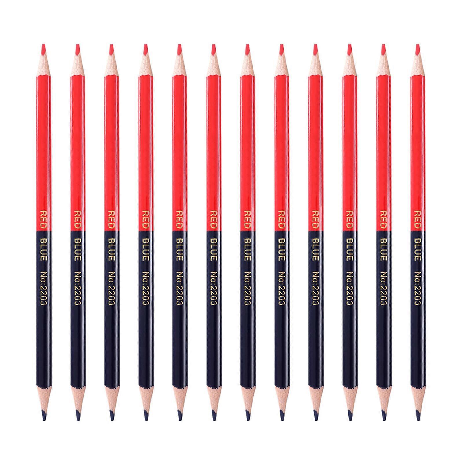 12Pcs/set Pre-Sharpened Pencil Double Ended Colored Erasable Pencil for Checking Redness & Blue Pencil Checking Pencils Multicolor