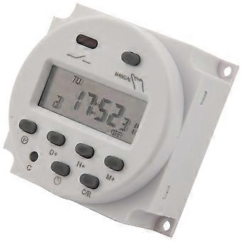 Product Name: Programmable Timer Rated Control Voltage: DC 12V Contact Capacity: 16A(8)A, 250V AC Hysteresis: less than or equal to 2 sec/day(25 C) ON/OFF Operation: 17 ON/OFF Consumption: 75VA(max.) Display: LCD Minimum Interval: 1 minute Switching Contact: 1 changeover switch Ambient Temperature: -10~+40C Ambient Humidity: 35-85%RH Mounting Hole Diameter: 3mm / 012" Overall Size(Approx.): 62 x 60 x 33mm / 24 inch x 236 inch x 13 inch(L*W*H) Material: Plastic, Electronic Parts Panel mounted, advanced pre-setting one week before, digital electronic timer switch with daily programs, repeat programs with 17 on/off setting and manual over-ride, auto timer error correction ± 30 sec, weekly. The program timer can automatically switch on and switch off various kinds of electric equipment according to fixed time. Used widely to control the lamp, water heater, sprayer, bottler, preheater, agriculture facilities, broadcasting equipment, home appliance, etc. Net Weight: 68g Package Contents: 1 x Programmable Timer 1 x Manual Only the above package content, other products are not included. Note: Light and different displays may cause the color of the item in the picture a little different from the real thing. The measurement allowed error is +/- 1-3cm.