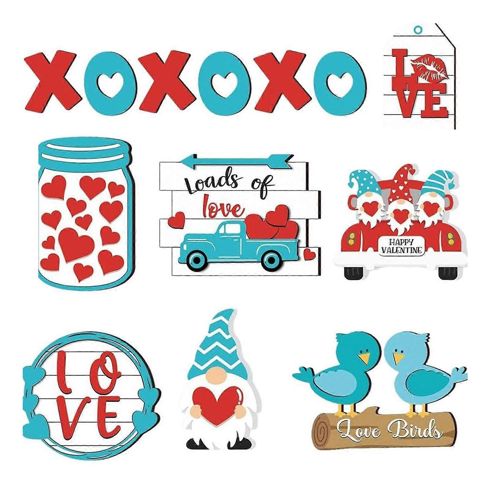 13Pcs/Set Valentine's Day Tiered Tray Decoration Lovebird Gnome Truck Jar Letter Wooden Table Sign Rustic Farmhouse Desktop Layered Tray Ornament