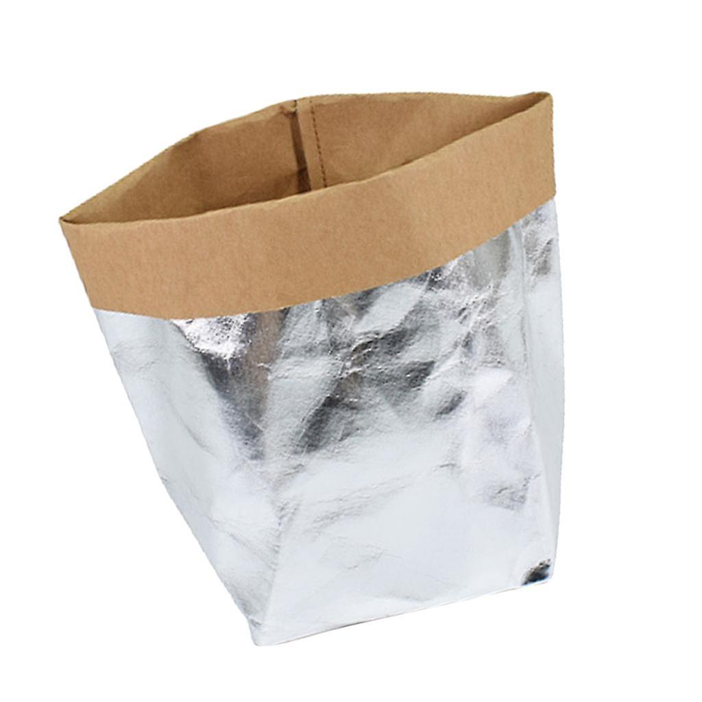Washable Kraft Paper Bag Plant Flowers Pot Storage Bag 13x13x23cm Silver