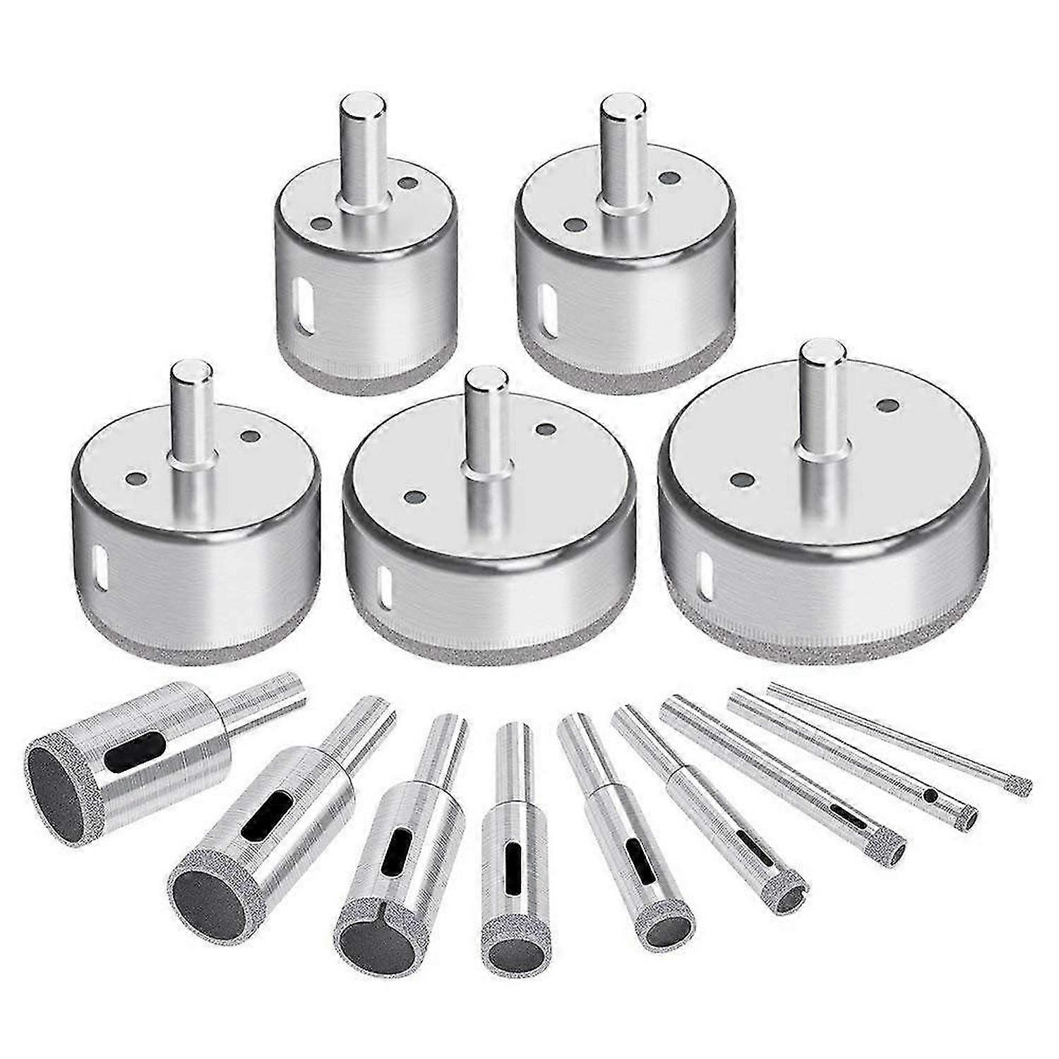 14Pcs Diamond Coated Core Hole Saw Bit Drill Set for Tiles Marble Glass 3-70mm
