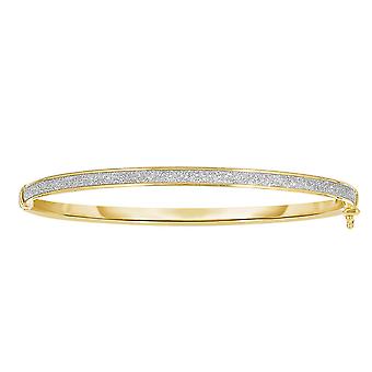 14k Yellow Gold Shiny Oval Shape White Glitter Bangle Bracelet, 7.25"