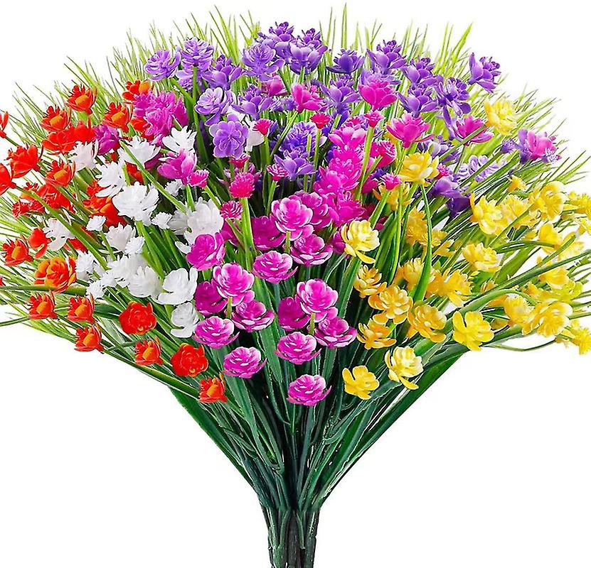 14 Bundles Artificial Flowers Outdoor Uv Resistant Fake Flowers No Fade Faux Plants Garden Porch Window Box Decorating