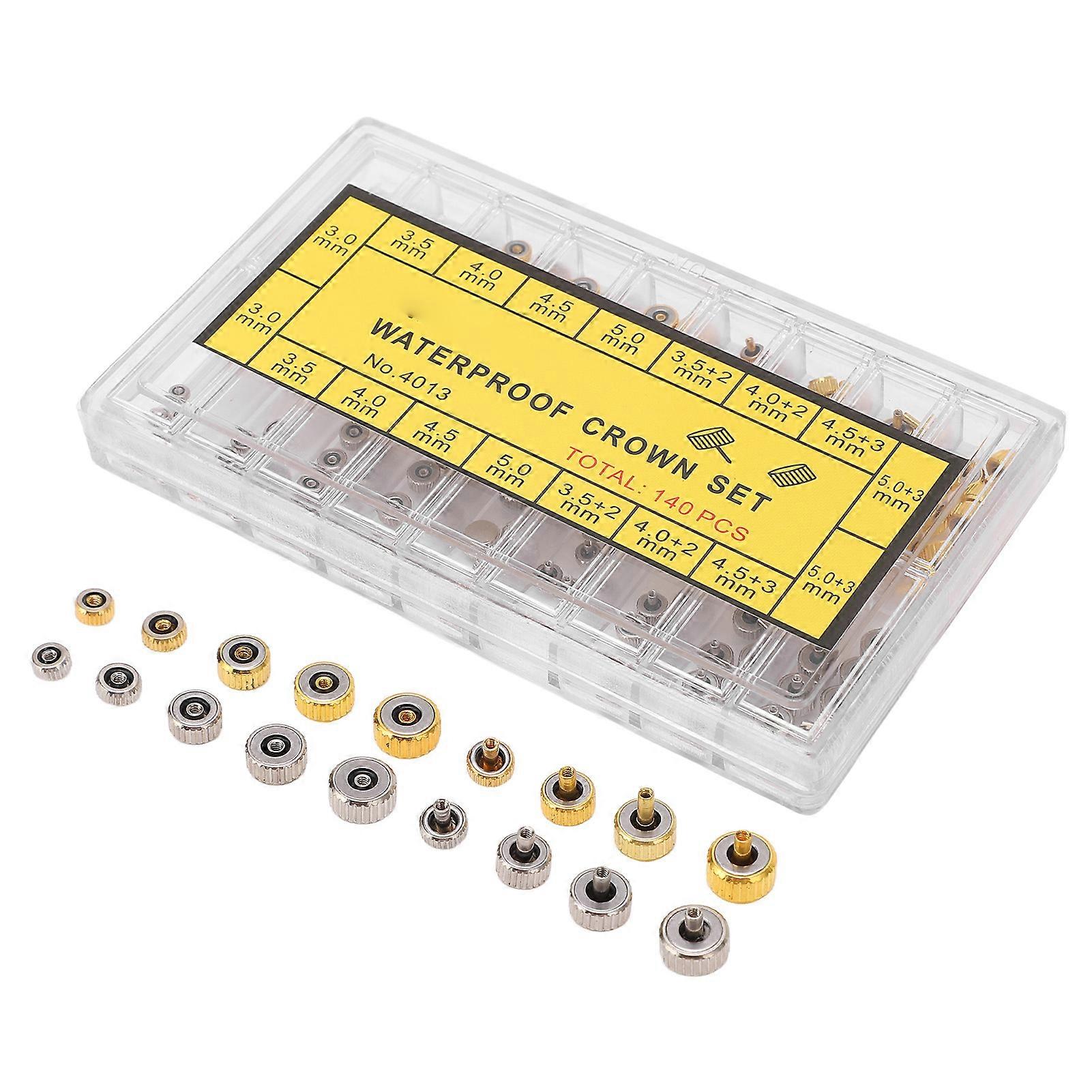140PCS Watch Crown Spare Parts Stainless Steel Portable Watch Crown Repairing Replacement with Storage Box