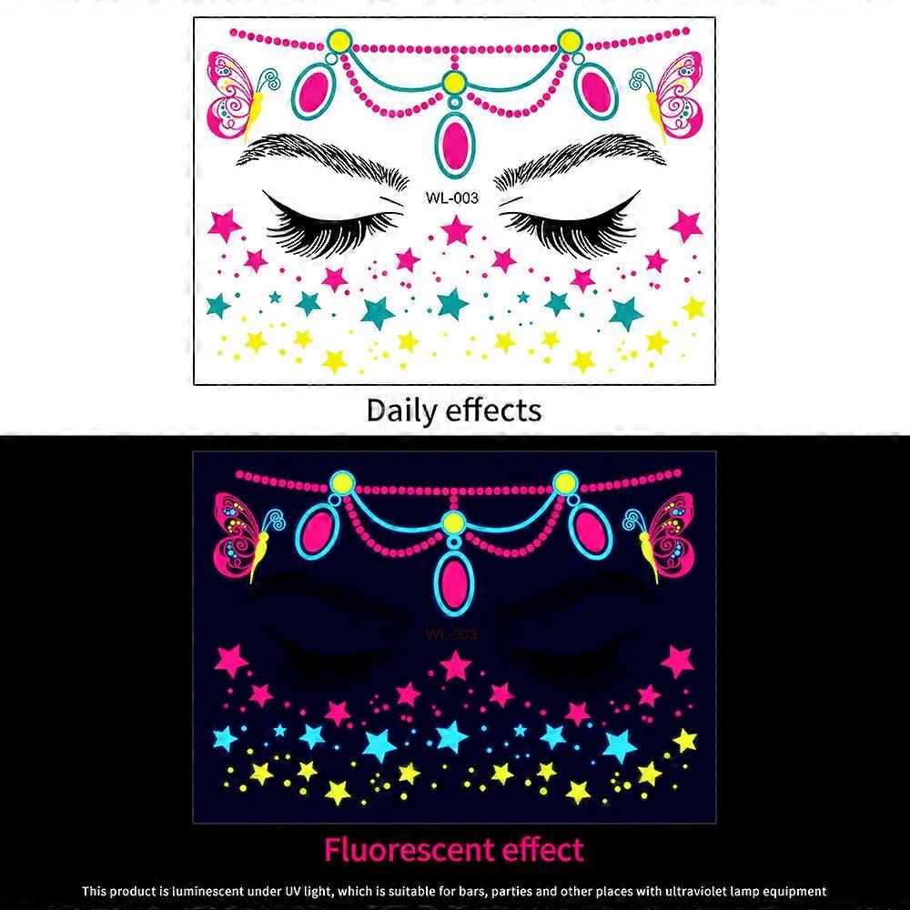 1/4/8Pcs Waterproof Temporary Fluorescent Face Stickers 15x14cm Halloween Neon Face Decal Music Festival Party Face Slider