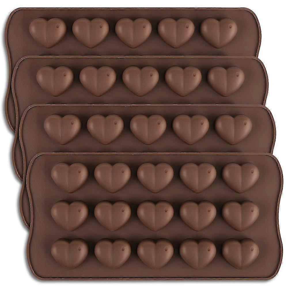 15-cavity Heart Shape Chocolate Mold, Set Of 4 Pcs Silicone Valentine Heart Chocolate Gummy And Candy Mold