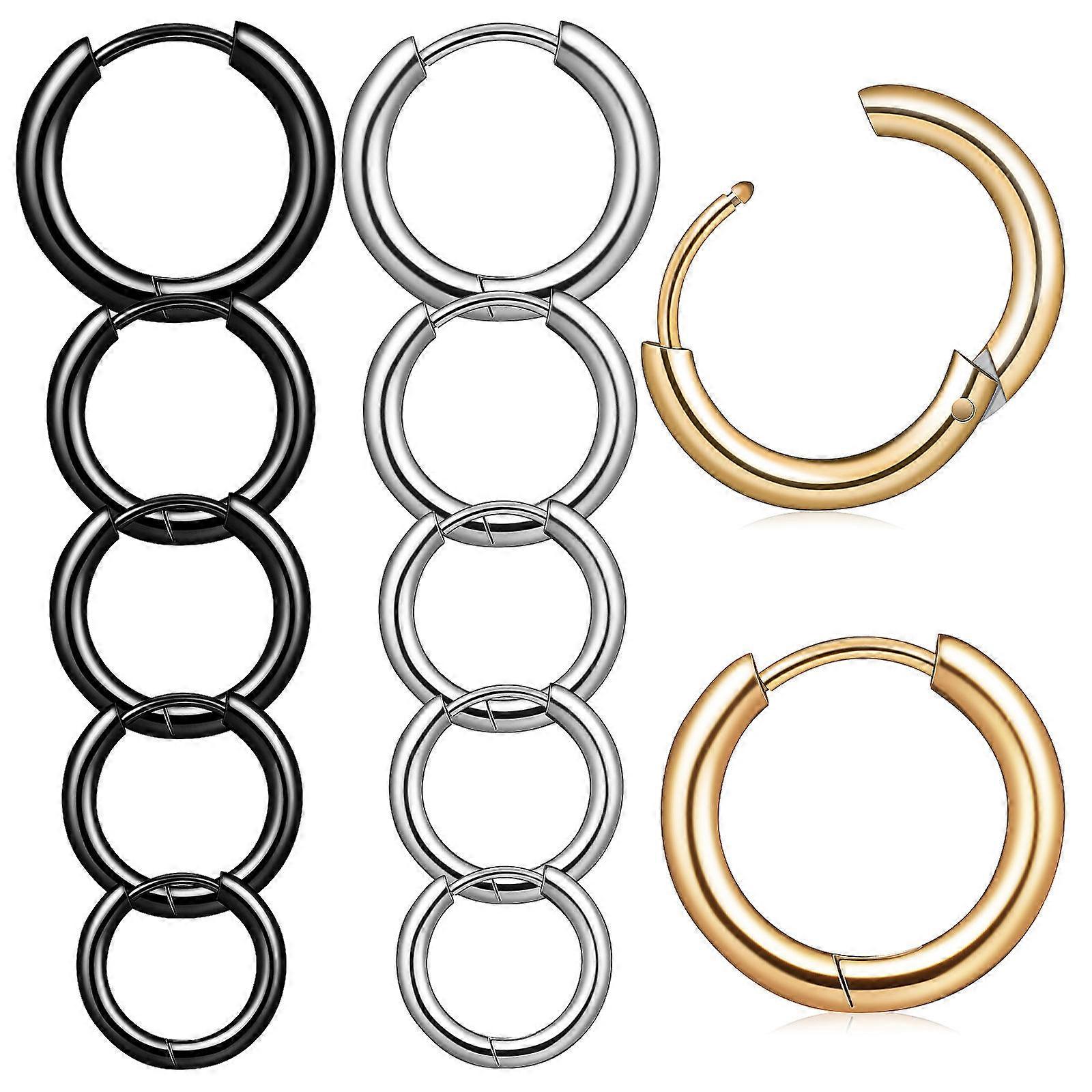 Made of titanium steel material, with fine workmanship, these hoop earrings are lightweight and comfortable to wear, and suitable for men for any occasions, such as party and night out. Also great present for birthday, Christmas, thanksgiving day, valentine's day and other holidays. Features -Color:Assorted Color -Material:Titanium steel -Size:1.60X1.60X0.20cm/0.63X0.63X0.08in - Various sizes and colors available: Various size for men or teens, and is great for holiday wear and easily worn on any occasion. - Circle structure: Hoop earrings are fashionable and versatile, exclusive for men, showcasing personal charm. - Professional design: , suit for men of most ages, great workmanship, lasting color retention. - Safe materials: Hoop earrings are crafted from titanium steel material, comfortable to wear for all day along. - Suitable for various occasions: Hoop earrings for men are widely wearing on daily wear, parties, halloween, etc. Package list: 15 x pair of hoop earrings (8MM, 10MM, 12MM, 14MM, 16MM)