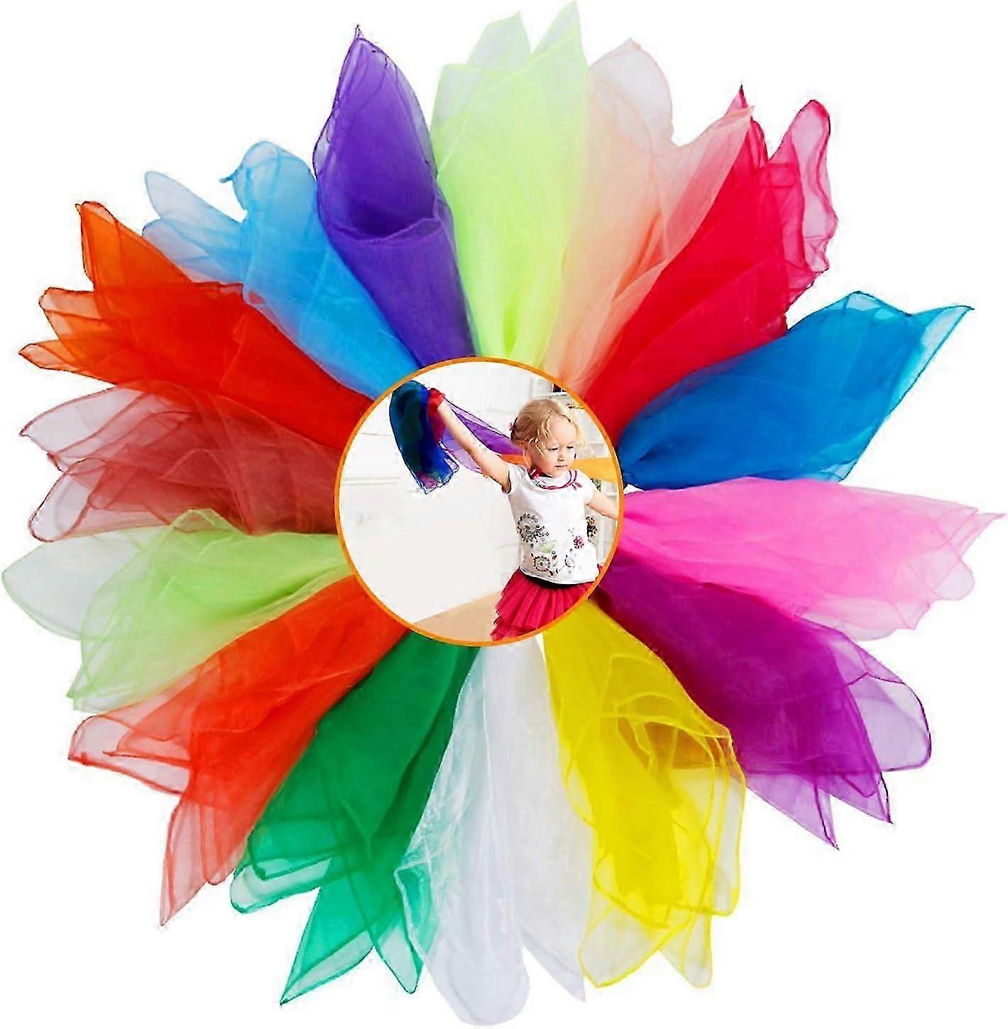 15 Pieces Sensory Scarves, Juggling Scarves Baby Dance Scarves Kids Rainbow Play Silks Chiffon Squares Sensory Scarf,60x60cm(Random Color)