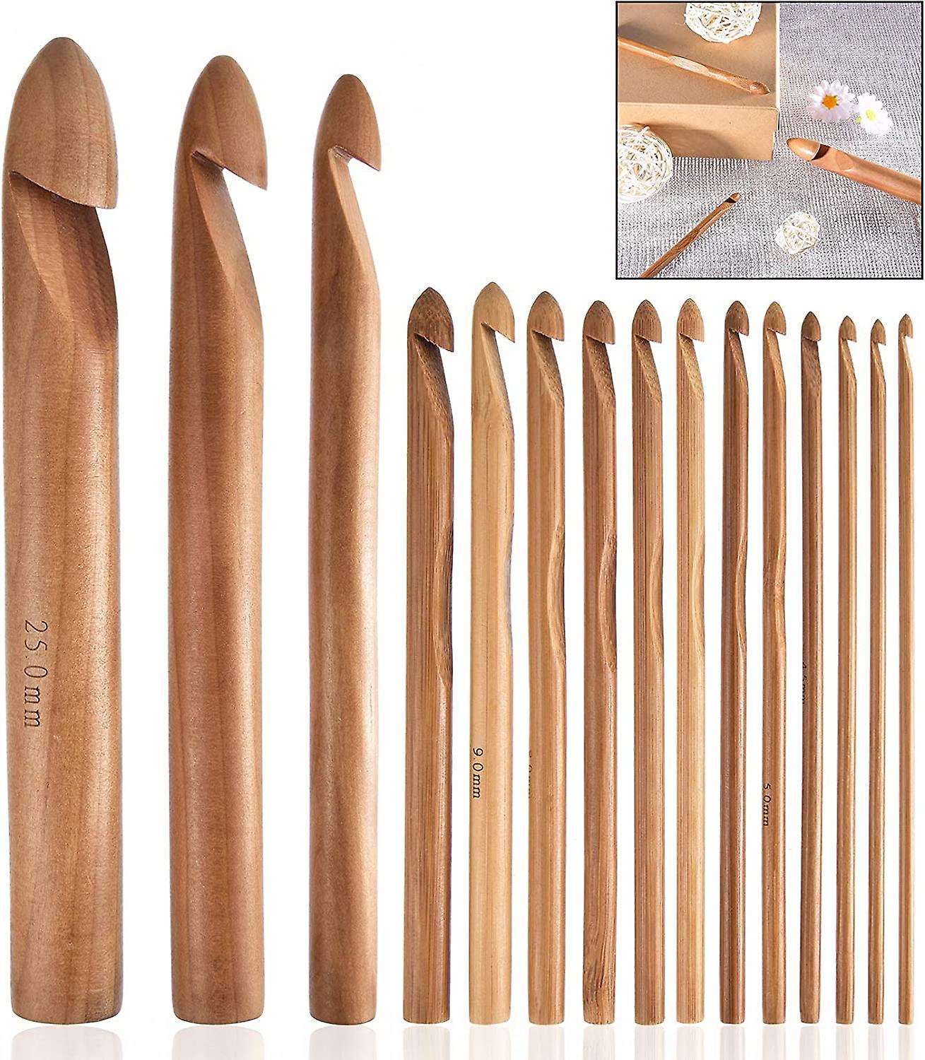 15 Piece Wooden Crochet Hook Set Bamboo Bamboo Crochet Hooks