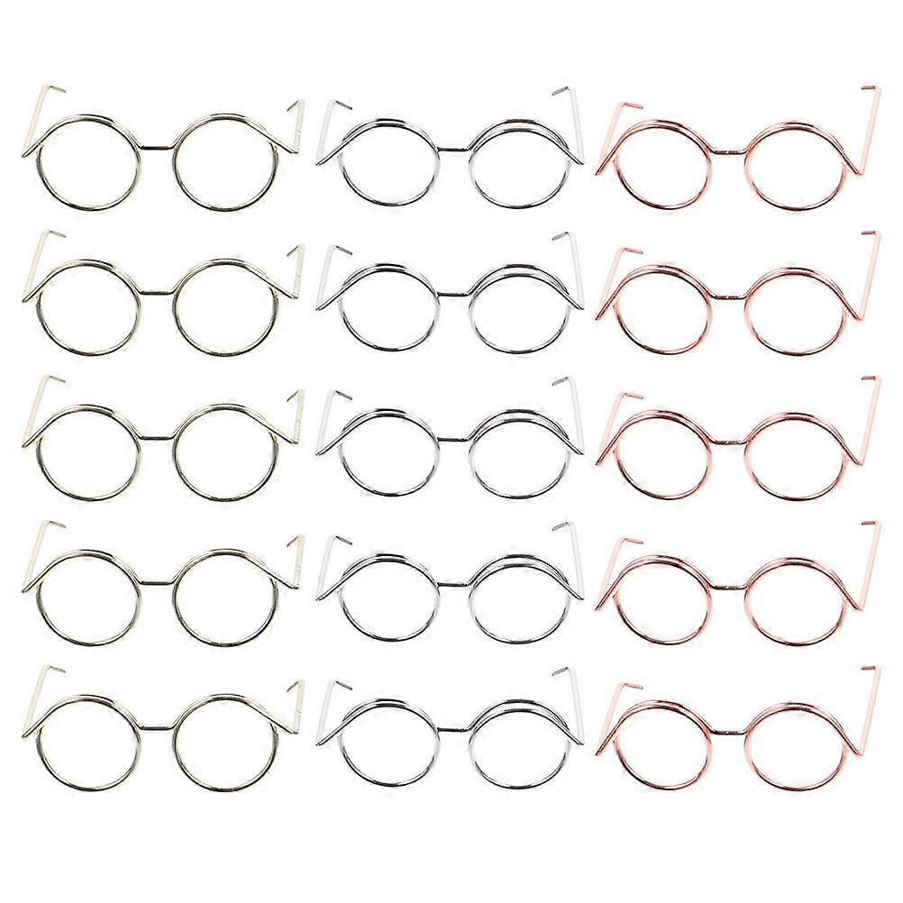 15pcs Doll Eyewear Chic Metal Wire Frame Glasses Lensless Design Dress Up Accessories Fashion Play
