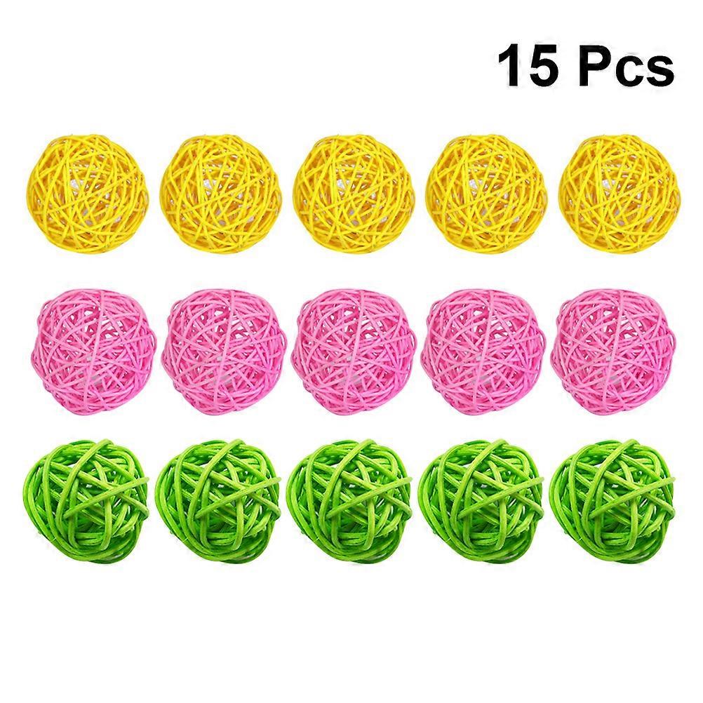 15pcs Wicker Rattan Balls DIY Craft Vine Pendants for Home, Kindergarten, Hotel, Bar Decor – Hanging Decorations in Yellow, Light Green, Pink for