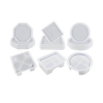 15 Pcs Coaster Resin Molds Silicone, Coaster Molds With Round Square Octagon Shape Holder Molds, Co