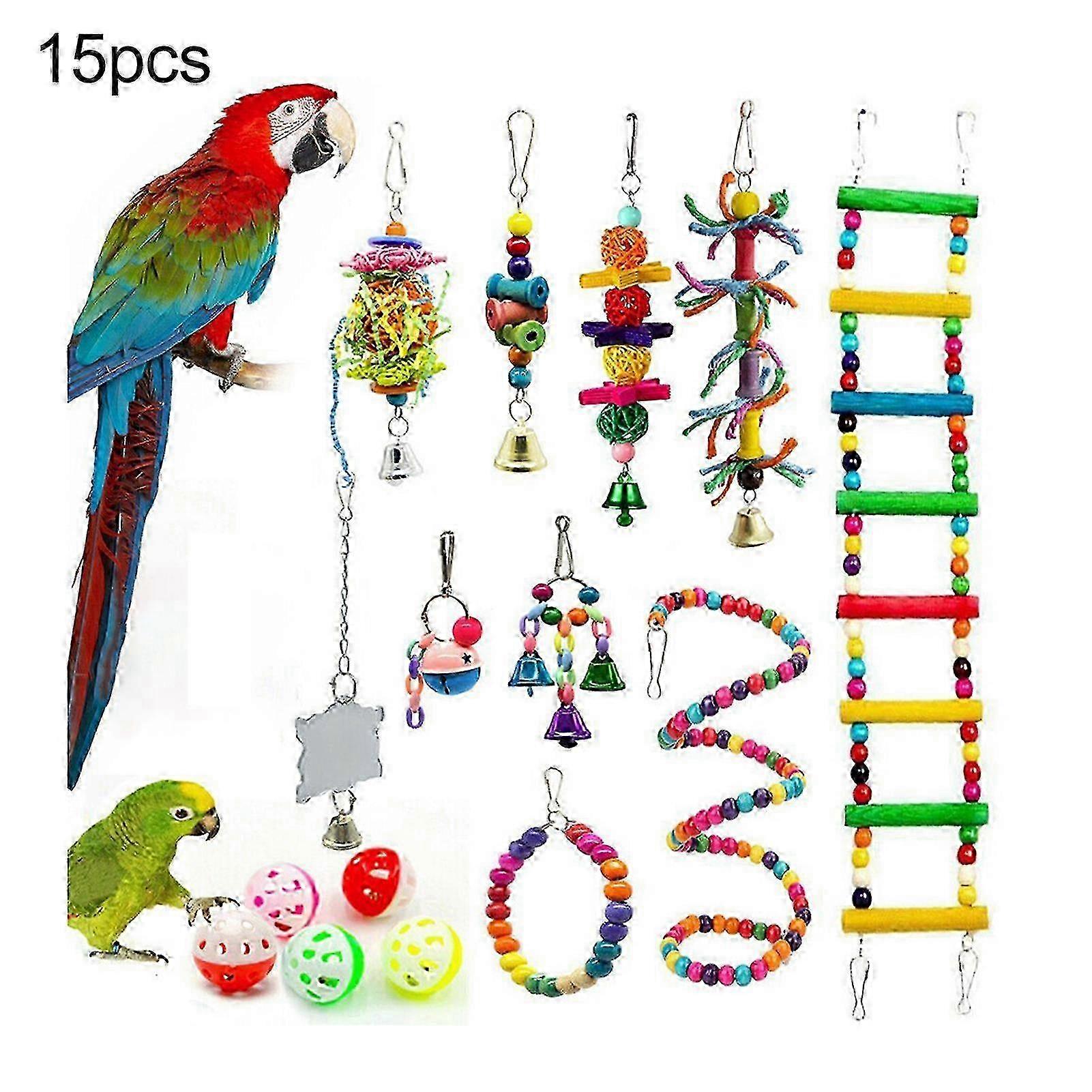 15Pcs/Set Parrot Toy Kit Beads Ball Bell Lightweight Acrylic Birds Cage Swing Chew Toy for Pet
