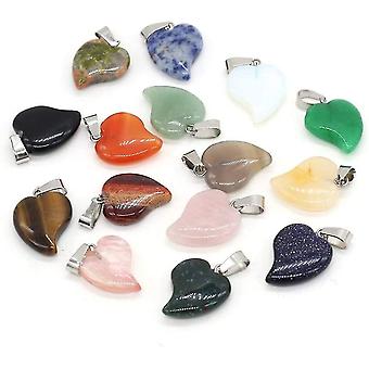 15 Pcs Natural Stone Pendants Peach Heart Shape Chakra Reiki Healing Mixed Stone Crystal Agate Charms For Jewelry Making Necklace Bracelet