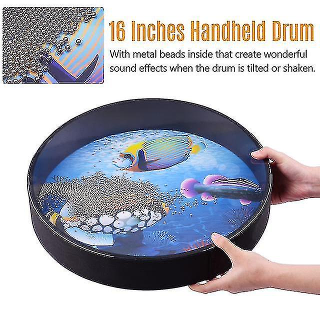 16 Inch Ocean Drum Wooden Handheld Sea Wave Drum Percussion Instrument Gentle Sea Sound Musical Toy Gift For Kids