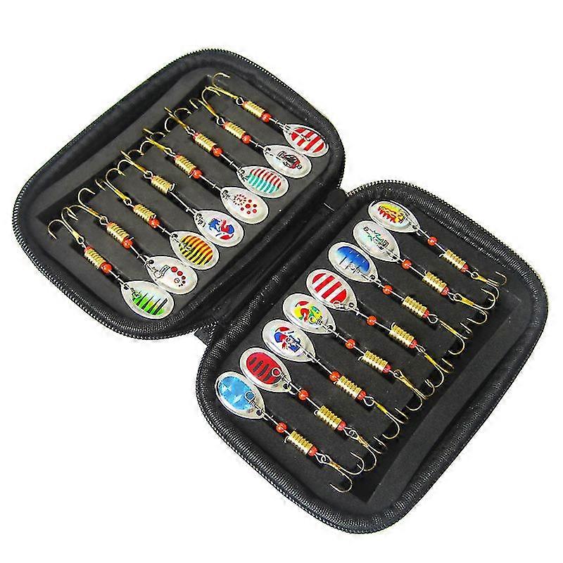 16pcs Fishing Lures Spinner Bait with Treble Hooks, Metal Sequins Spinners Baits Fishing Bait with Carry Bag For Freshwater Saltwater Fishing