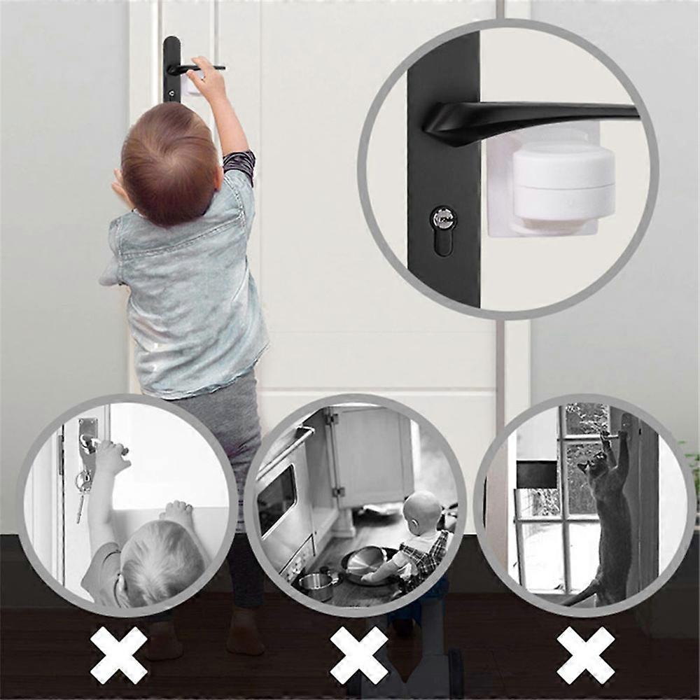 1/6Pcs Child Proof Door Lever Lock - Door Handle Lock - 3M Self Adhesive - Punch free Child Safety Door Handle Locks Features: * All you need to deter little ones, cats, or dogs from opening door levers. * Easy to install & no tools needed: Simply peel-off the adhesive tab and stick the lock on the door to babyproof your handles. * Easy to remove without damaging your door: Heat the adhesive area for around 30 seconds and pull-off the locks. * Large compatibility: Sticks to any surface, including wood, glass, steel, and more... It is also compatible with almost any door handle. Simple and discreet childproof locks that blends into your room design Specification: Size: 3.5 x 5 x 7cm Material: ABS Package Includes: 1Pc/6Pcs Door Lever Lock (Depend on your choice) Note: 1. Please allow 1-3mm differences due to manual measurement, thanks 2. Please understand because of the light irradiation or computer display difference, so I can't guarantee photos and real color is 100% the same.