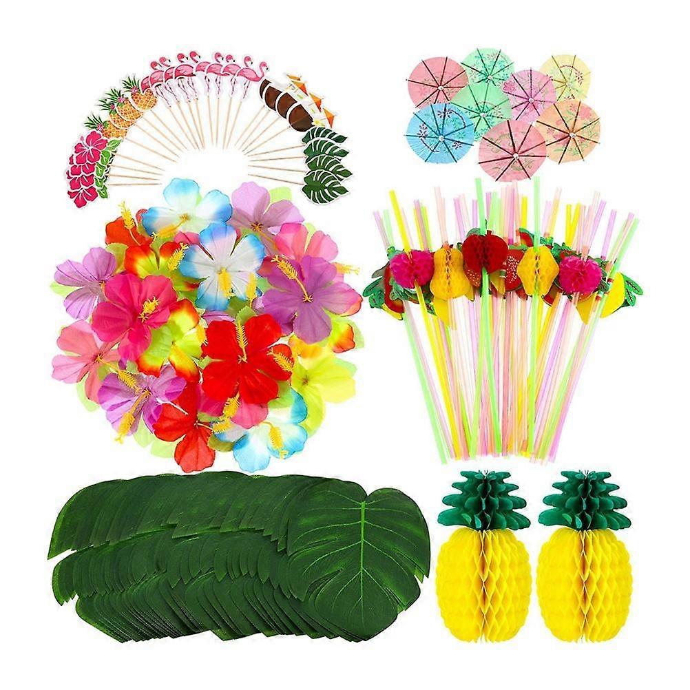 172 Pcs Assorted Summer Hawaii Themed Table Supplies for Kids Party Decoration Cake Topper Drinking Straw Set