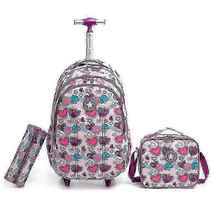 18 Inch Rolling Backpack with Lunch Bag Pencil Case Wheeled School Bag Trolley Bag for Boys Girls