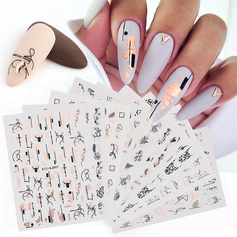 18pcs Nail Stickers Set Mixed Designs 3d Holographic Laser Abstract Stripes Leaf Decals Manicure Decor Chstzsj01-09