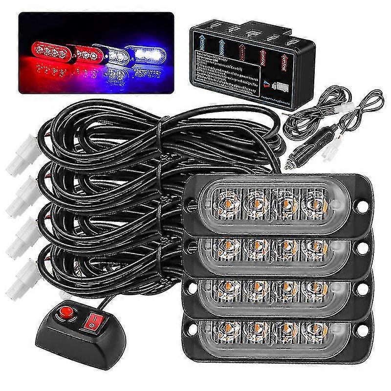 Product information:_x005f_x000D_Product Name: Car LED Strobe 4 Light Set_x005f_x000D_Product material: ABS_x005f_x000D_Working voltage: DC12V_x005f_x000D_LED Quantity: 4LED4PCS_x005f_x000D_LED power: 16W_x005f_x000D_Measured current: 0.46A0.05_x005f_x000D_Light color: whiteyellowredbluewhite yellowred blue_x005f_x000D_Lighting mode: constant light + flashing manual switching of 18 modes_x005f_x000D_Power connection method: wiringcigarette lighter_x005f_x000D_Waterproof grade: IP65_x005f_x000D_Expected life: 50000H_x005f_x000D_Scope of application: carmotorcycleoff-road vehicletruckforkliftATVengineering vehicleboat_x005f_x000D_Product weight: 550g_x005f_x000D_Inner box size: 21016060mm_x005f_x000D_ Notice:_x005f_x000D_Please allow 1-2cm size error due to manual measurement_x005f_x000D_