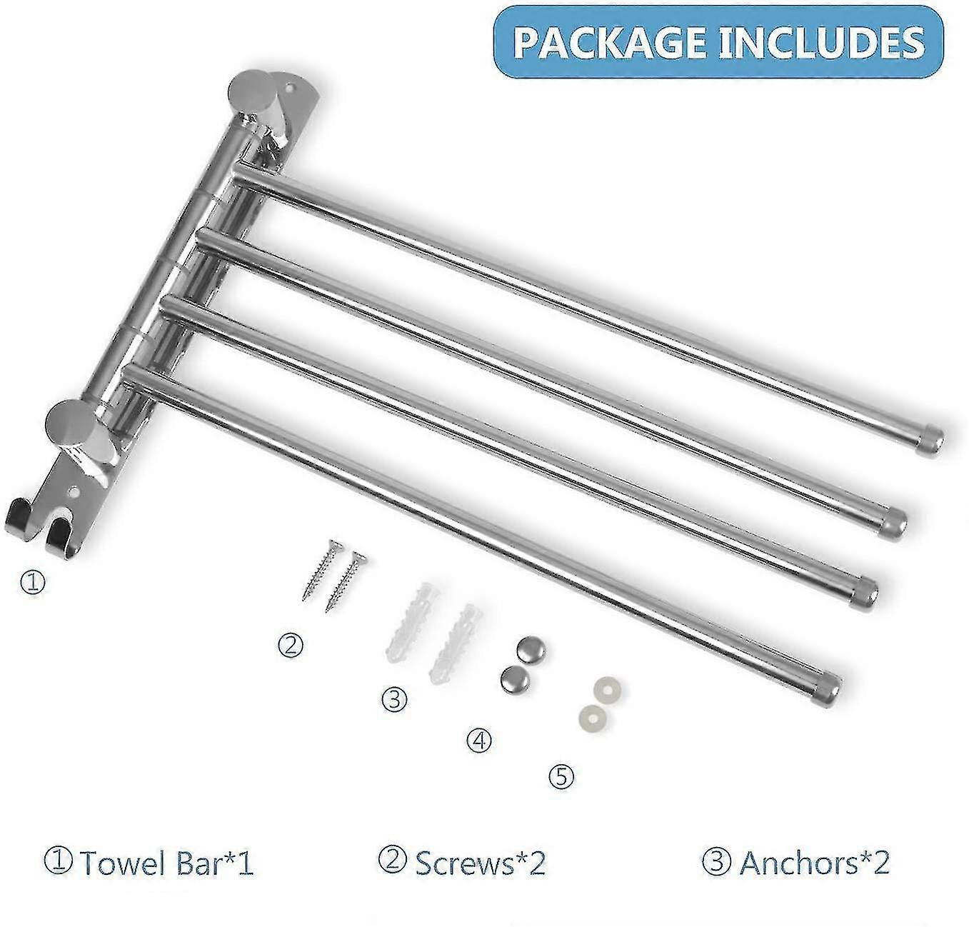 180rotation Towel Holder Stainless Steel Bath Towel Holder With 4-armed Swivel Arm Towel Rail Wall-mounted Bathroom Towel Rails Brushed For Bathroom