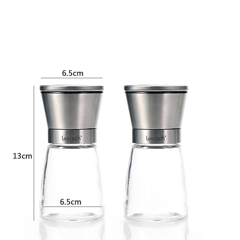 18/8 Brushed Stainless Steel Pepper Mill and Salt Mill, 6 Oz Glass Tall Body, 5 Grade Adjustable Cer