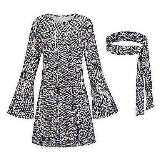 1970s Women Dress Headband Set - Halloween Costume Role Play & Cosplay for Disco Party with Long Bell Sleeves