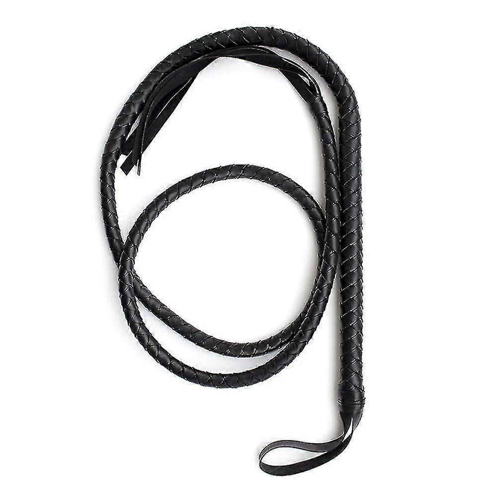 1.9m Bull Whip Leather And Suede Braided Tails Equestrian Horse Whips (black)-E