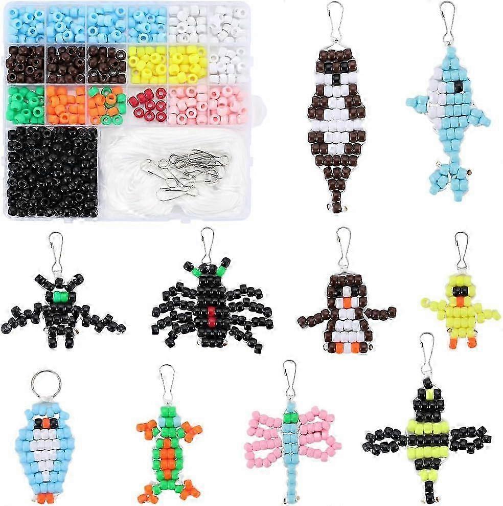 1Box DIY 10Sets Pony Beads Pets Bead Craft Kit Pony Bead Animals 8mm Opaque Colorful Beads Beading Duck Halloween Spiders Dragonfly Fish Ocean Animal