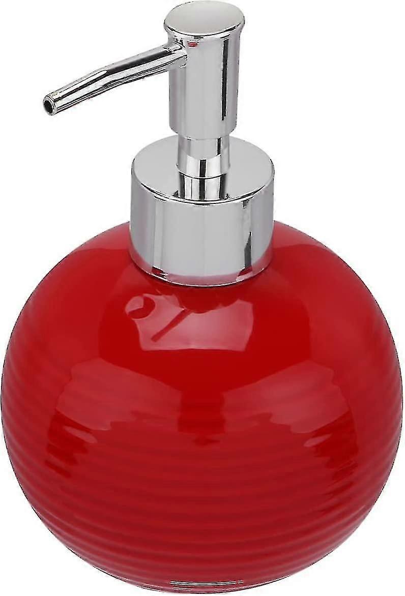 1pc Ceramic Soap Dispenser, Round Press Bottle Refillable Lotion Bottle, Squeeze Pump Dispenser Liquid Hand Soap Dispenser ( Red )