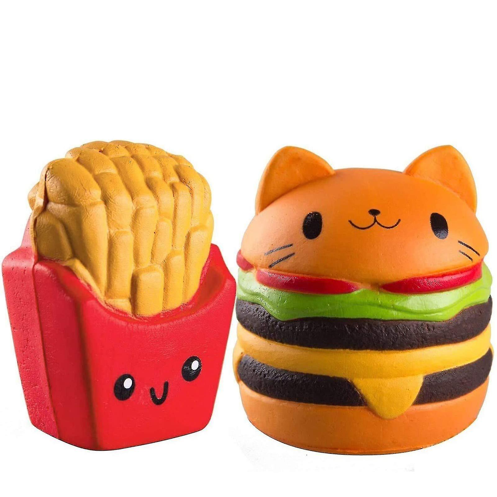 2 x Slow Rising Squeeze Squishy Toys - Hamburger, Kawaii Soft Food Squishy Toys - ya01