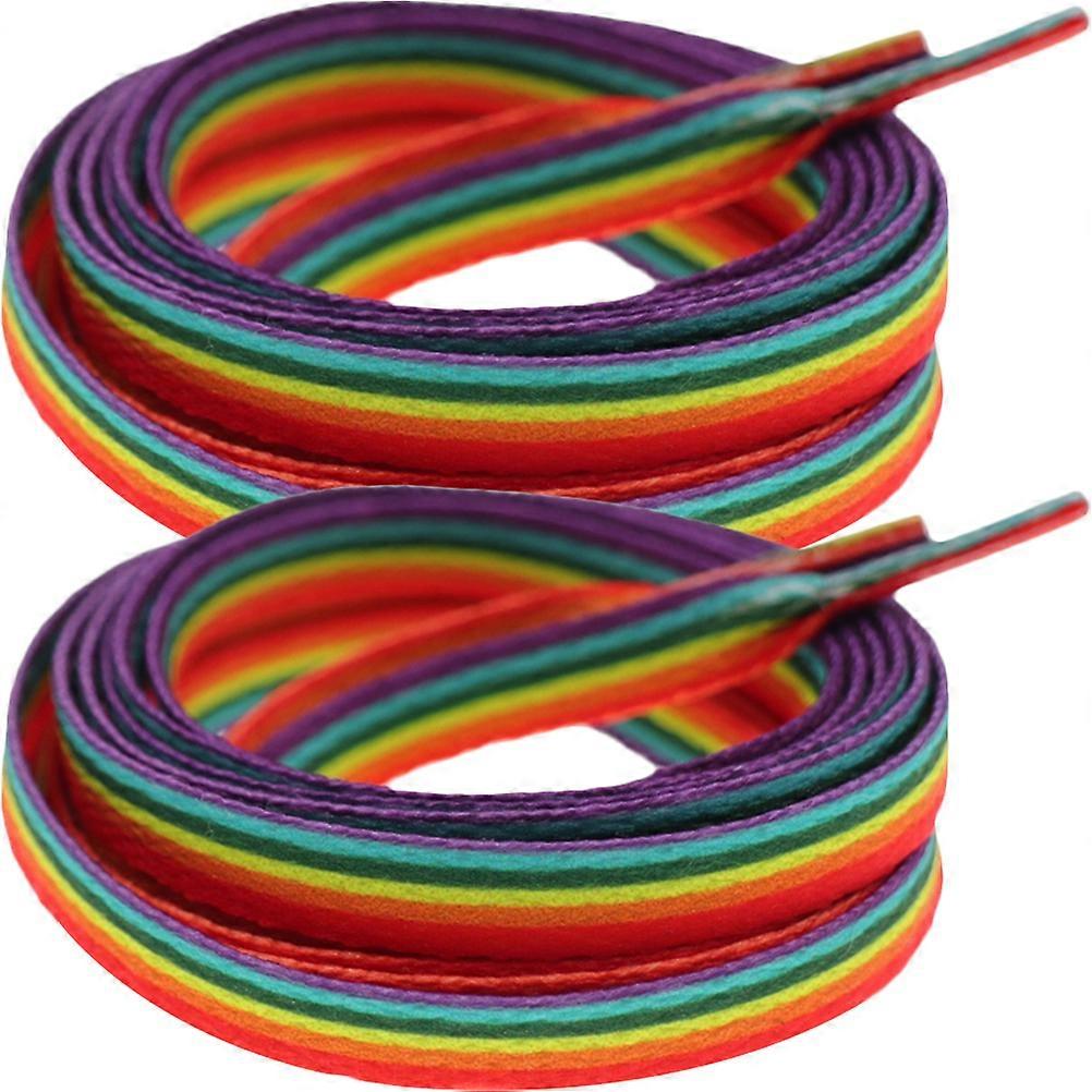 2 Pairs Sneaker Shoelaces Polyester Shoe Straps Bright Rainbow Shoes Straps