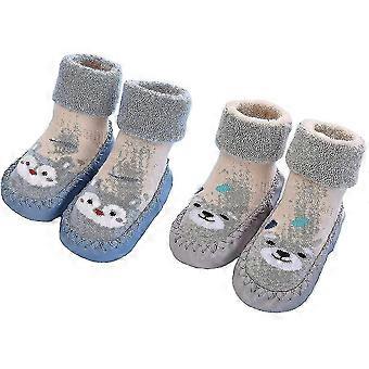 2 أزواج جوارب أطفال نعال للأطفال الصغار قطن أحذية دافئة ناعمة وحيدة غير قابلة للانزلاق